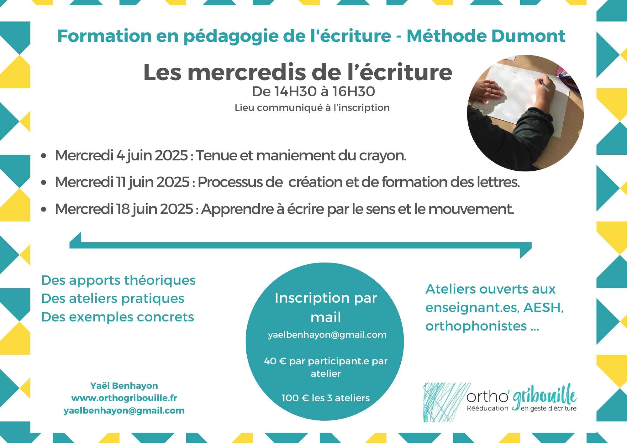Former le personnel éducatif aux bonnes pratiques et surtout celles à éviter, voilà la coeur de la formation! Proposer des outils adapter à chaque âge et à chaque étape est essentiel pour enseigner l'écriture.